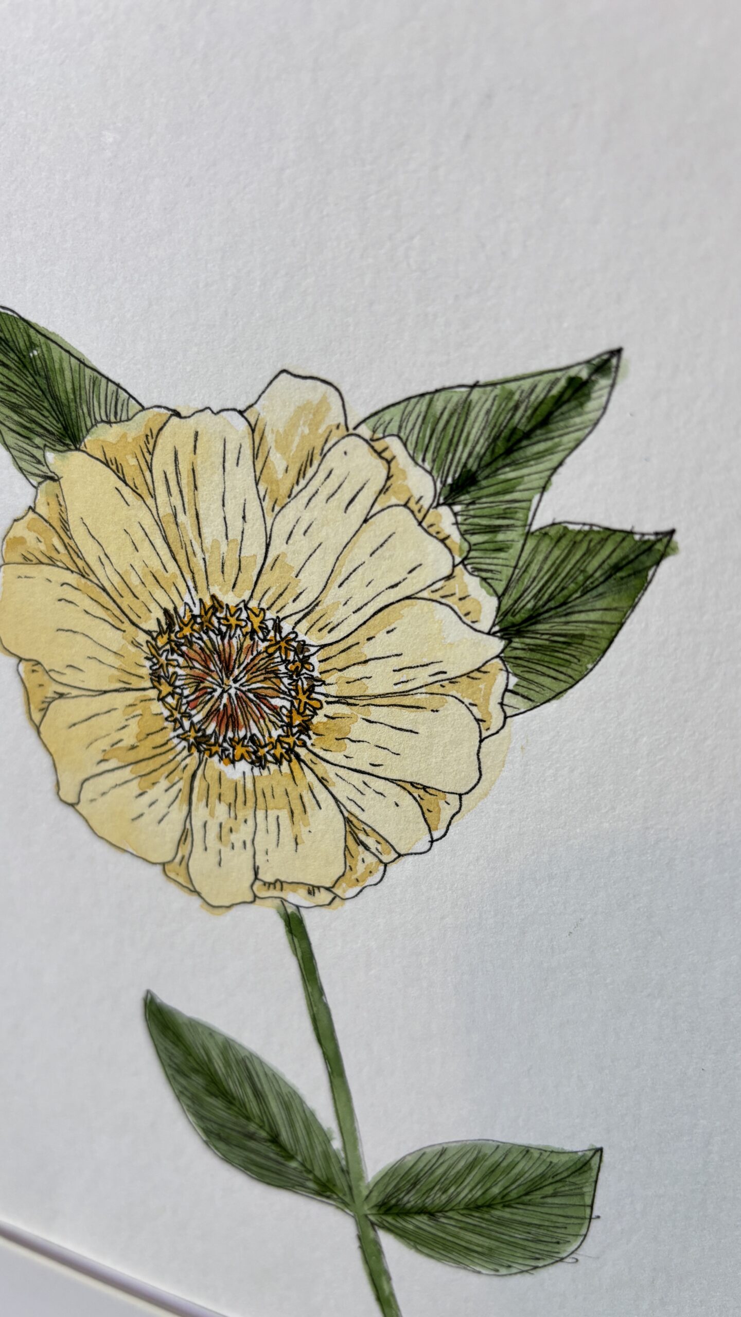 Watercolor on cold press paper; 6×8″ in a white 8×10″ mat.