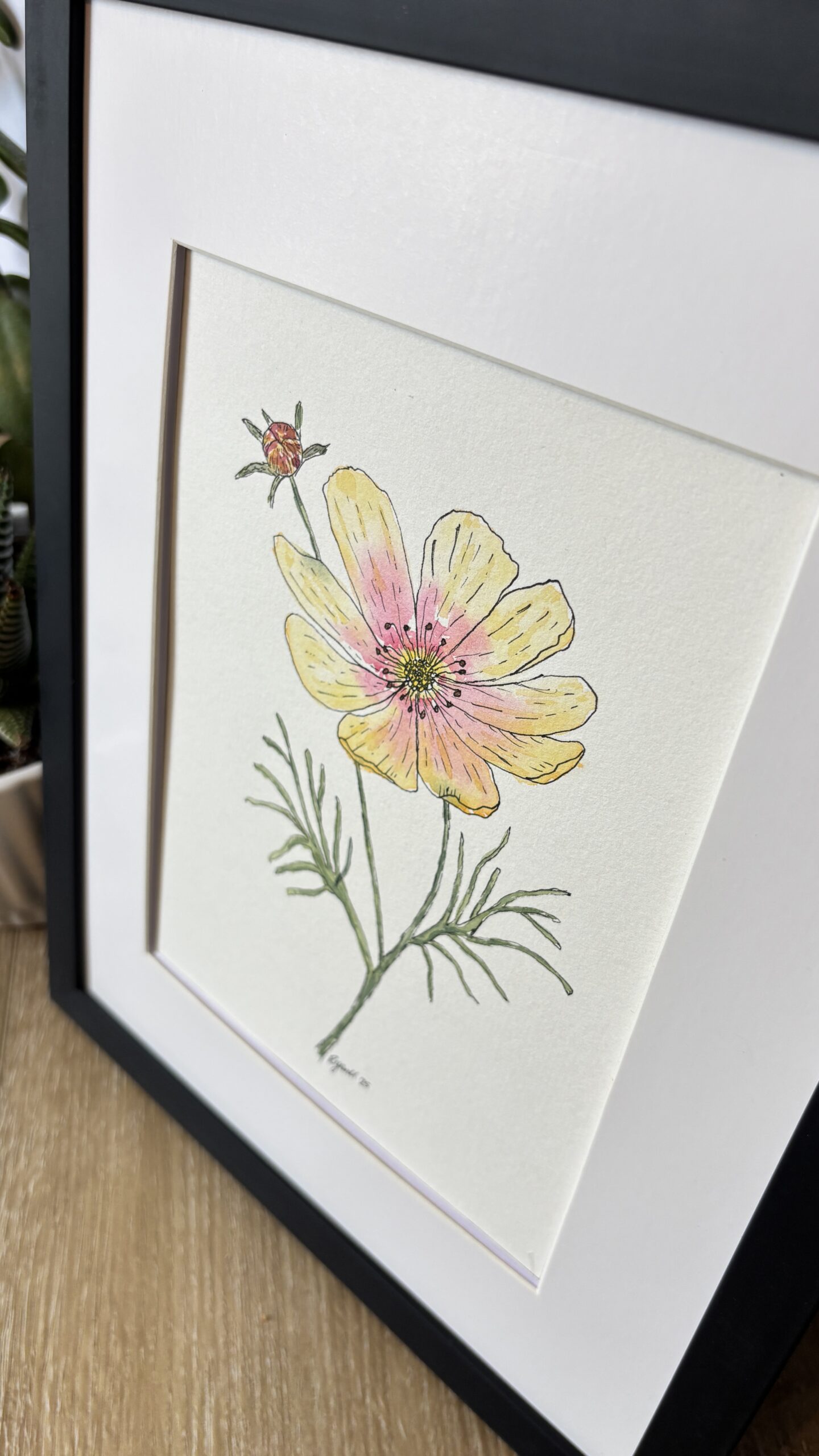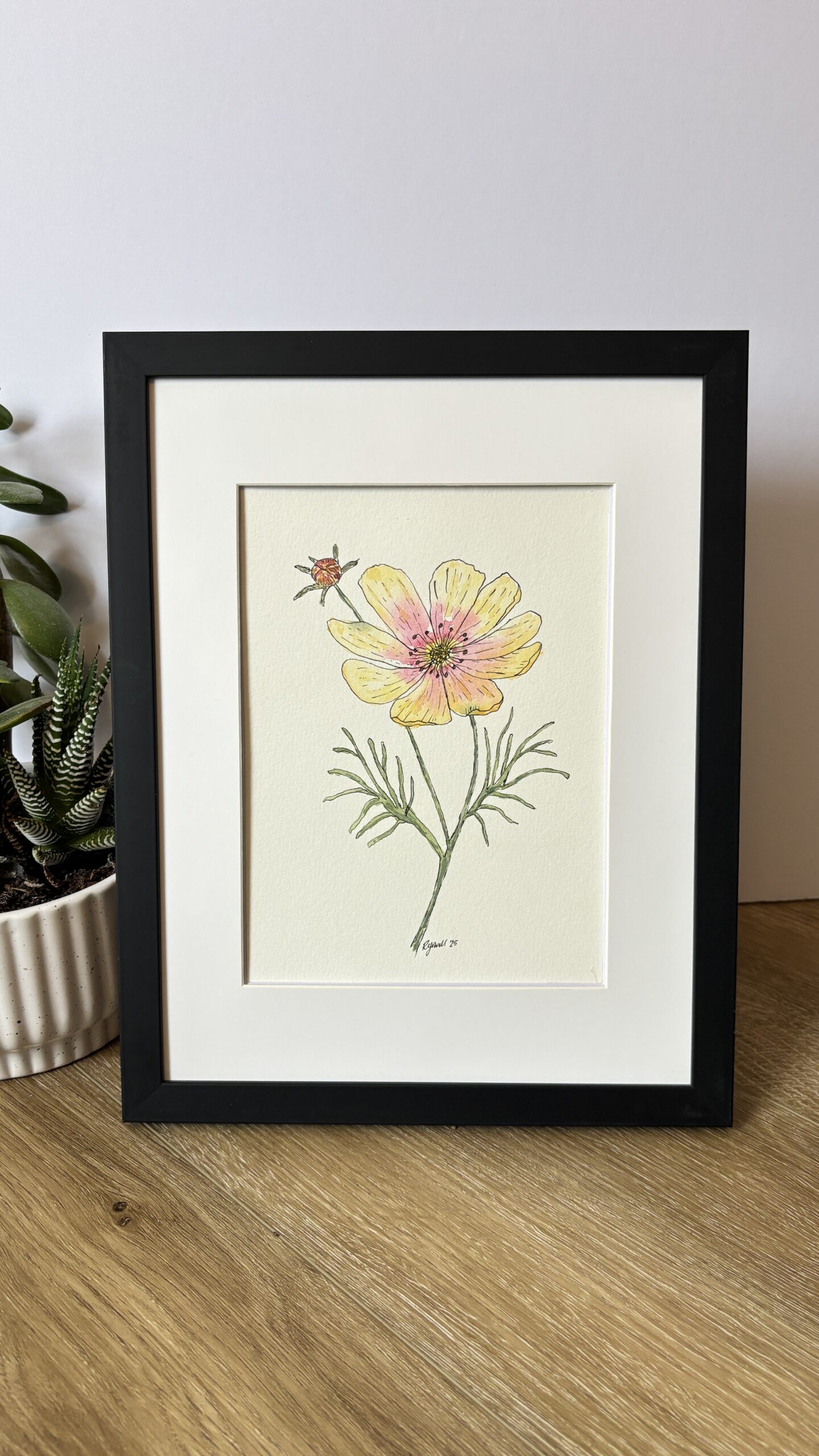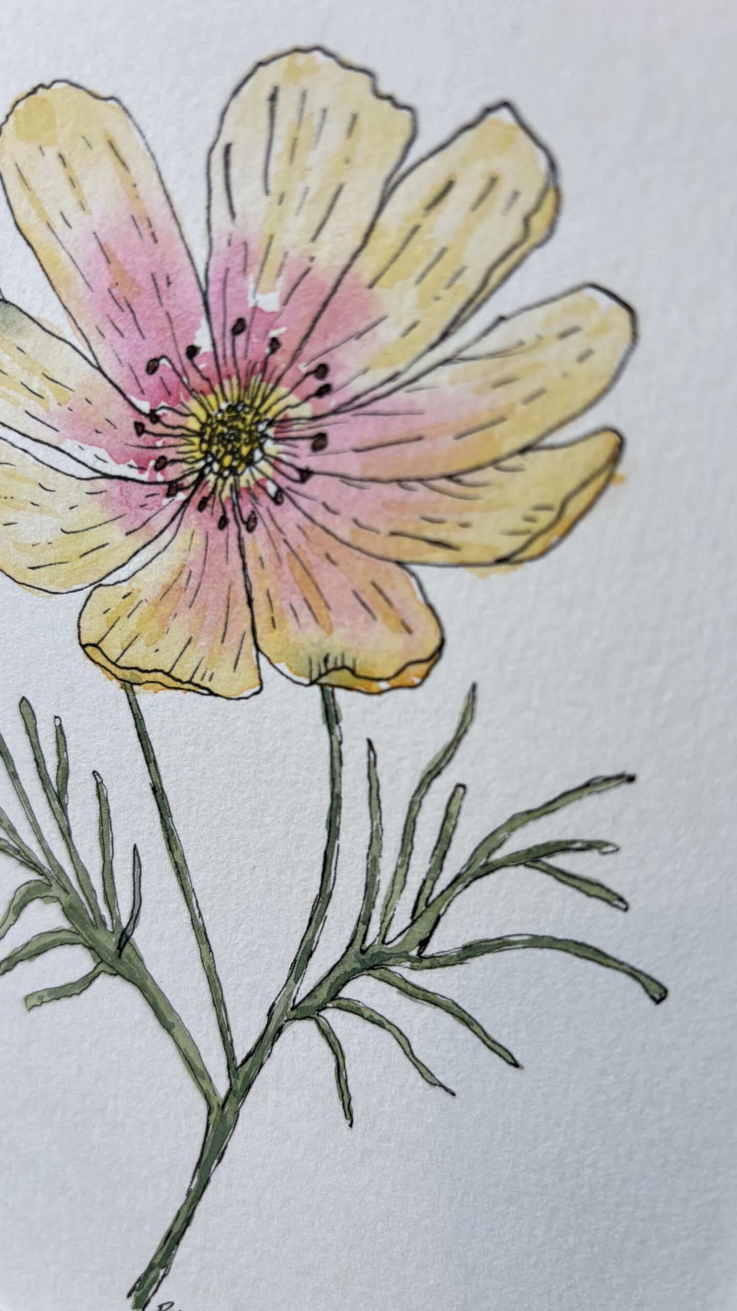This charming pair of watercolor and ink paintings showcases a zinnia and a cosmo in full bloom, inspired by my cheerful cut flower garden this summer.