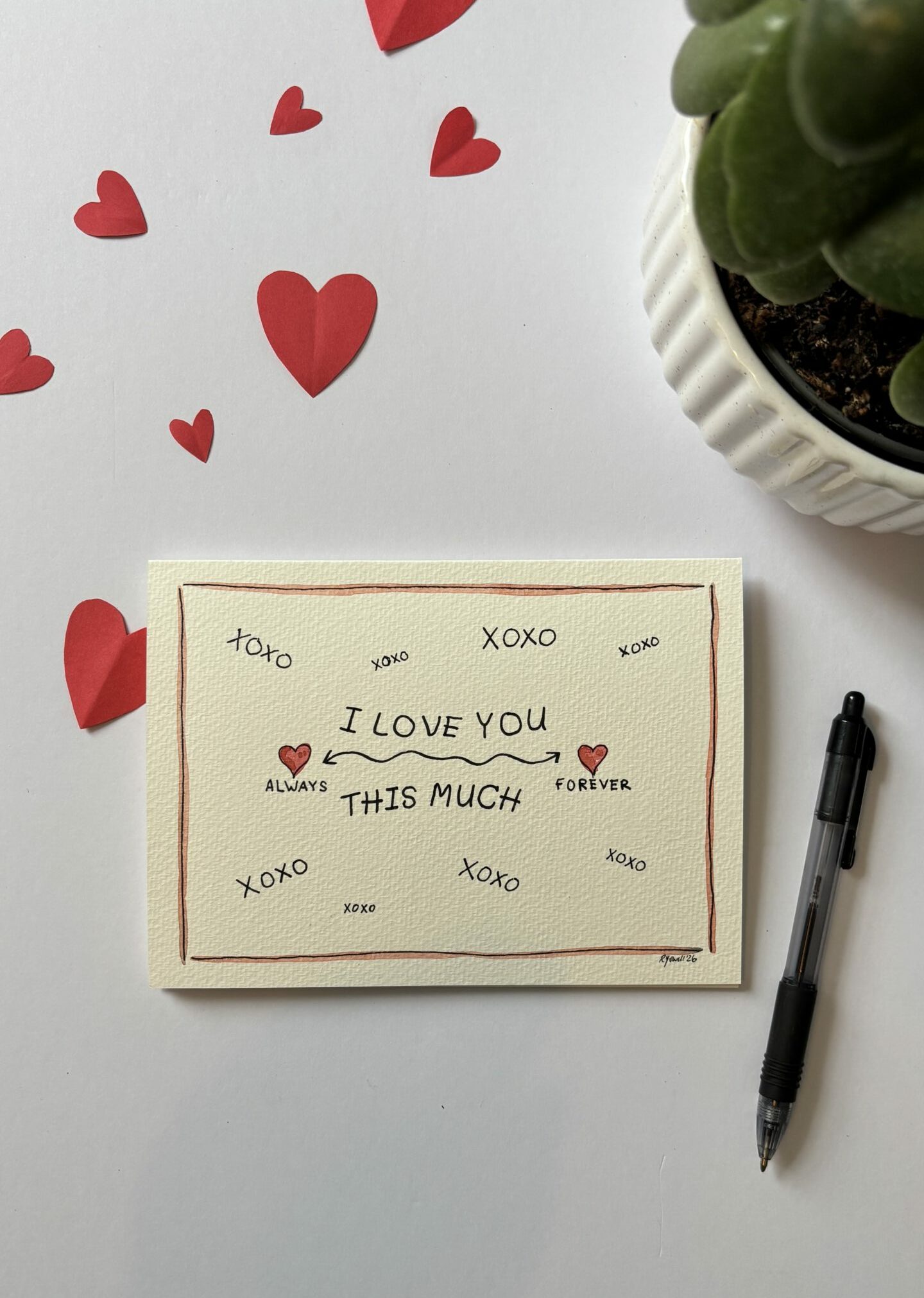 This one-of-a-kind, hand-painted Valentine’s Day note card is a heartfelt way to share love in a meaningful, personal way. It was thoughtfully created, making it a special gift for the one you love.