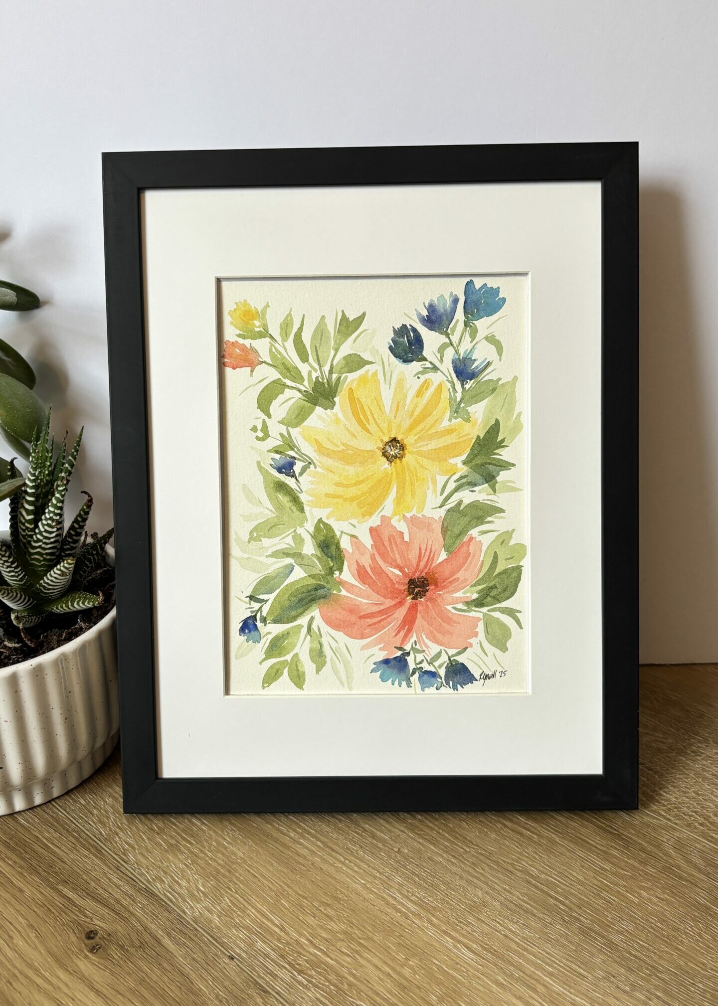 Watercolor on cold press paper; 6×8″ matted to 8×10″.